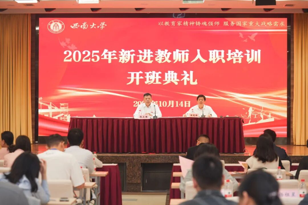10月14日,2025年新进教师入职培训开班仪式在国际学院报告厅举行。党委书记张卫国出席并讲话,教师代表、相关职能部门负责人及2025年新进教师参加。副校长邹芙都主持仪式。