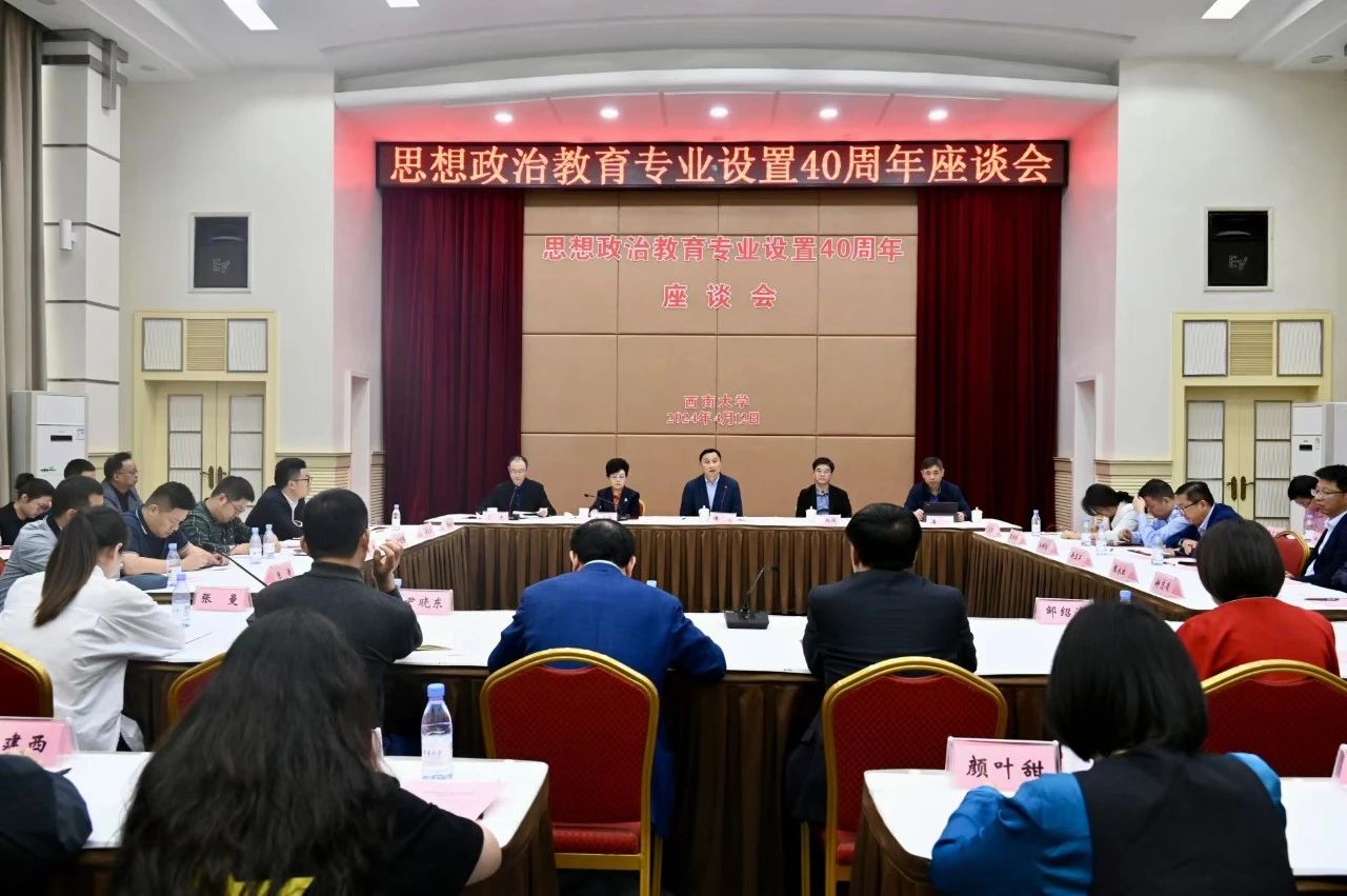 在教育部印发《关于在12所院校设置思想政治教育专业的意见》,决定在南开大学、复旦大学、西南大学等12所院校设置思想政治教育专业40周年之际,为回顾40年来的建设发展历程,总结40年取得的辉煌成就与宝贵经验,更好推动新时代思想政治教育专业高质量发展,学校于4月12日举办思想政治教育专业设置40周年座谈会。