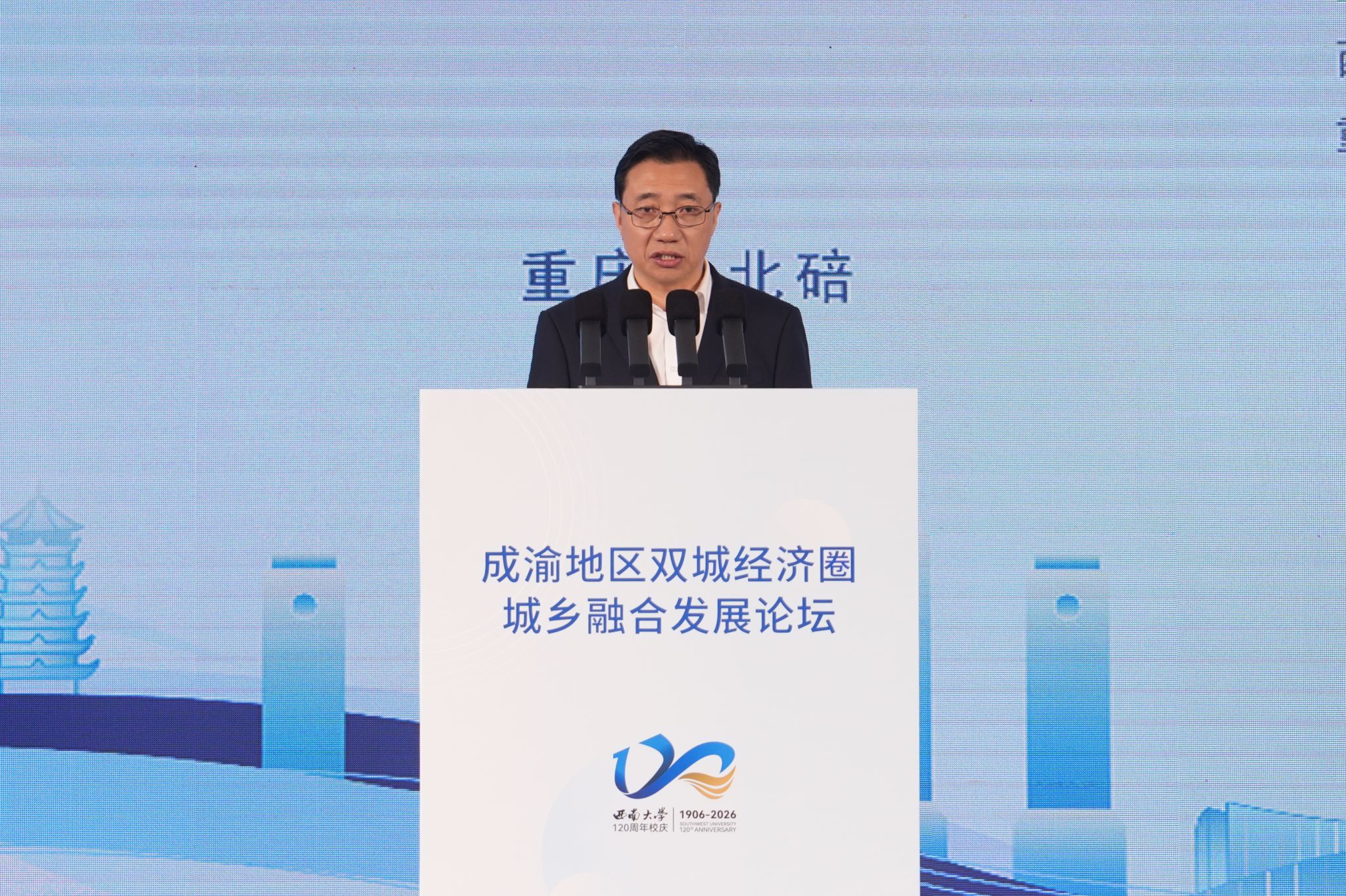中国国家创新与发展战略研究会学术委员会常务副主席黄奇帆应邀作主旨报告。学校党委书记张卫国、北碚区委书记林旭阳、四川省农业农村厅二级巡视员汪源泉、重庆市农业农村委副主任周松分别致辞。
