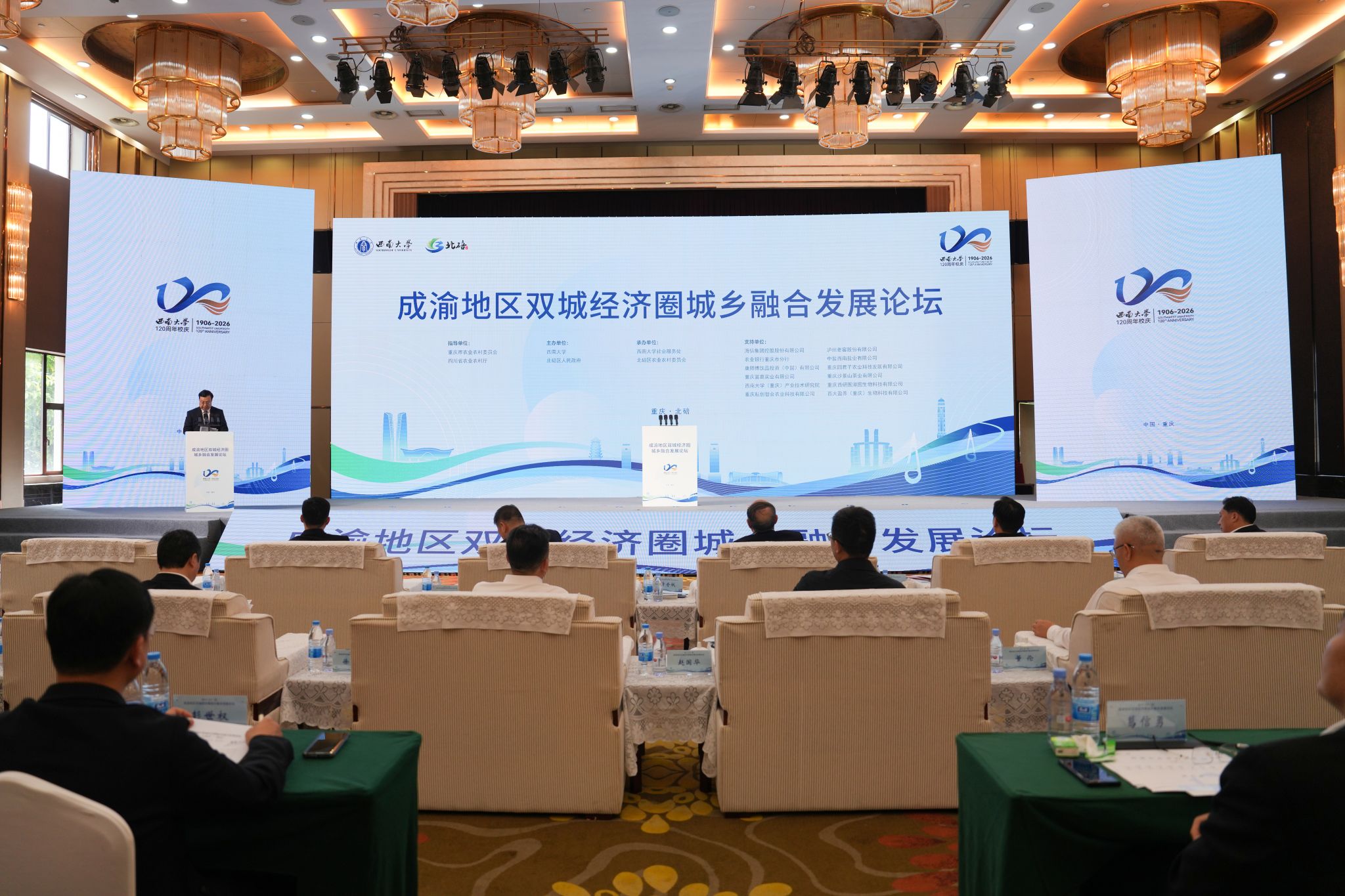 4月17日下午,由西南大学与重庆市北碚区人民政府共同主办的“成渝地区双城经济圈城乡融合发展论坛”举行。本次论坛以服务国家战略、深化校地协同、推动城乡融合、助力乡村振兴为主题,汇聚与西南大学有良好合作关系的川渝两地市区县政府、高校以及国内龙头企业等政产学研用各界领导和代表260余人,共话城乡融合新路径,共绘成渝发展新蓝图,献礼西南大学百廿华诞,彰显“双一流”高校服务国家战略和区域发展的使命担当。